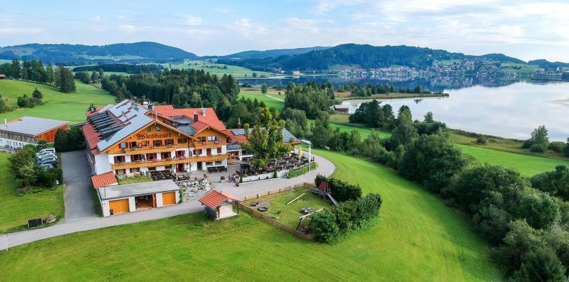 Unser Gasthof liegt inmitten wunderschöner Landschaft zwischen Füssen und Hopferau, nahe am idyllischen Hopfensee. Unsere herrliche, abwechslungsreiche, hügelige Voralpenlandschaft mit zahlreichen Seen lädt geradezu zum Baden, aber vor allen Dingen zum Motorradfahren ein.
