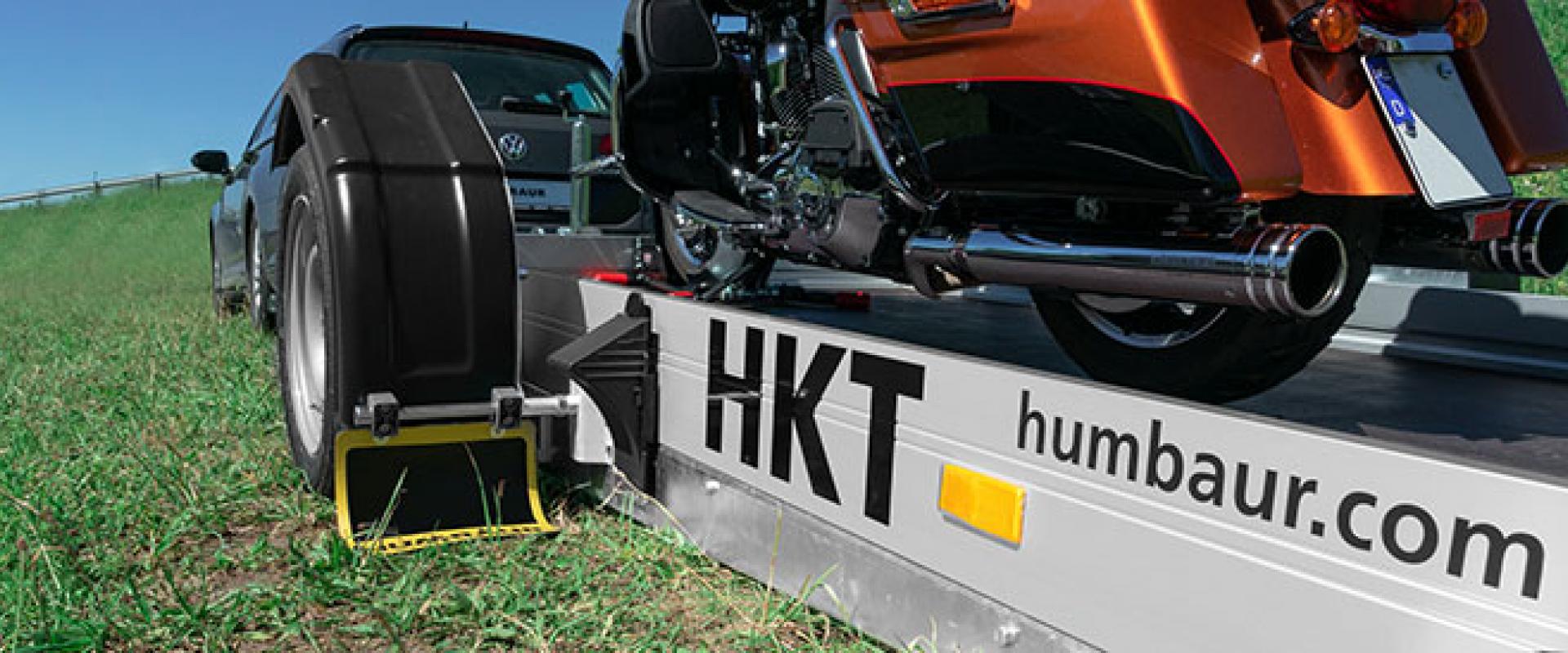 Immer wieder gibt es Situationen in denen man das Motorrad von A nach B bringen muss – und zwar ohne, dass es selbst gefahren wird. Eine gute Lösung für dieses Problem bietet der Humbaur Fahrzeugtransporter HKT. Der Anhänger ist vielseitig einsetzbar und bringt seine Ladung sicher und zuverlässig an den Ort der Bestimmung. Zudem geht das Be- und Entladen kinderleicht, denn der Anhänger kann einfach abgesenkt und das Fahrzeug bequem aufgeschoben oder aufgefahren werden. Ohne Anlegen von Bohlen.